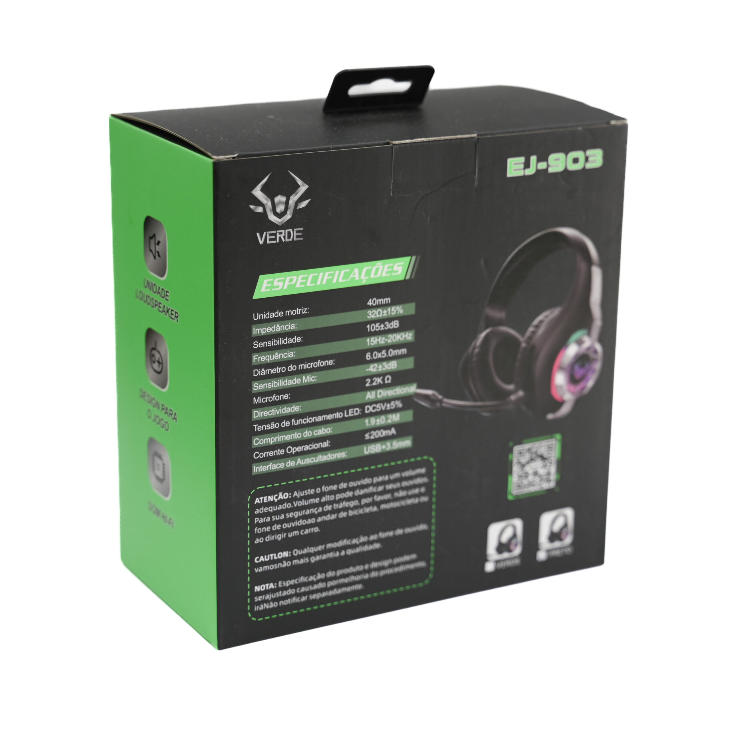 – Frequência: 20hz-20khz – Alto-falantes: 40mm